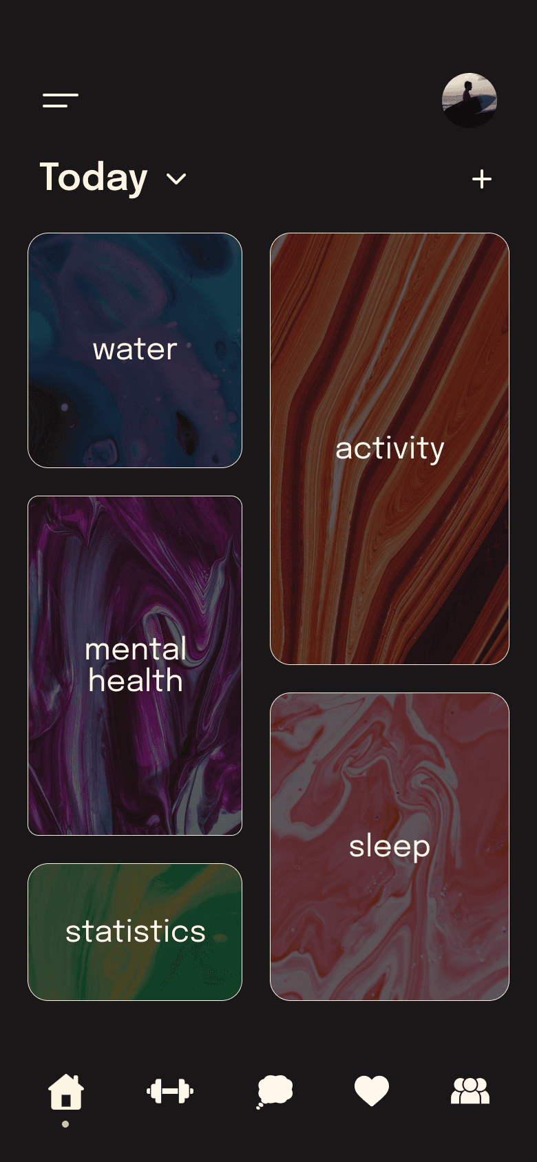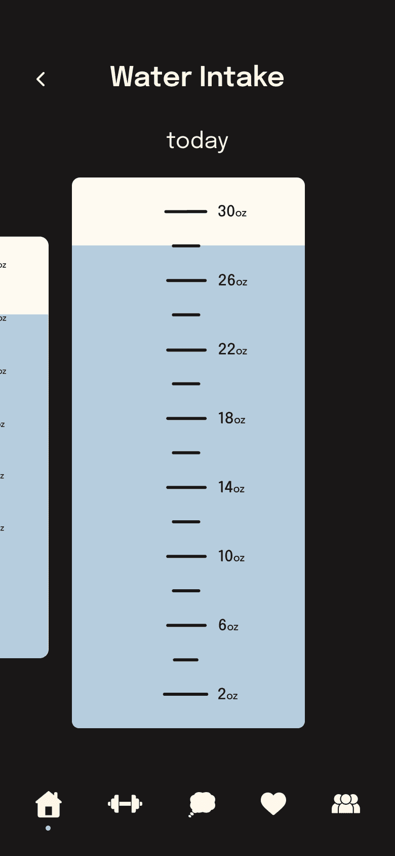 Guided by research showing that trackers boost motivation and adherence, I prioritized key fitness elements: water intake, daily activity, sleep, and basic mental health metrics. The design draws inspiration from Apple’s activity rings, offering a familiar and motivating experience compatible with the Apple Watch.