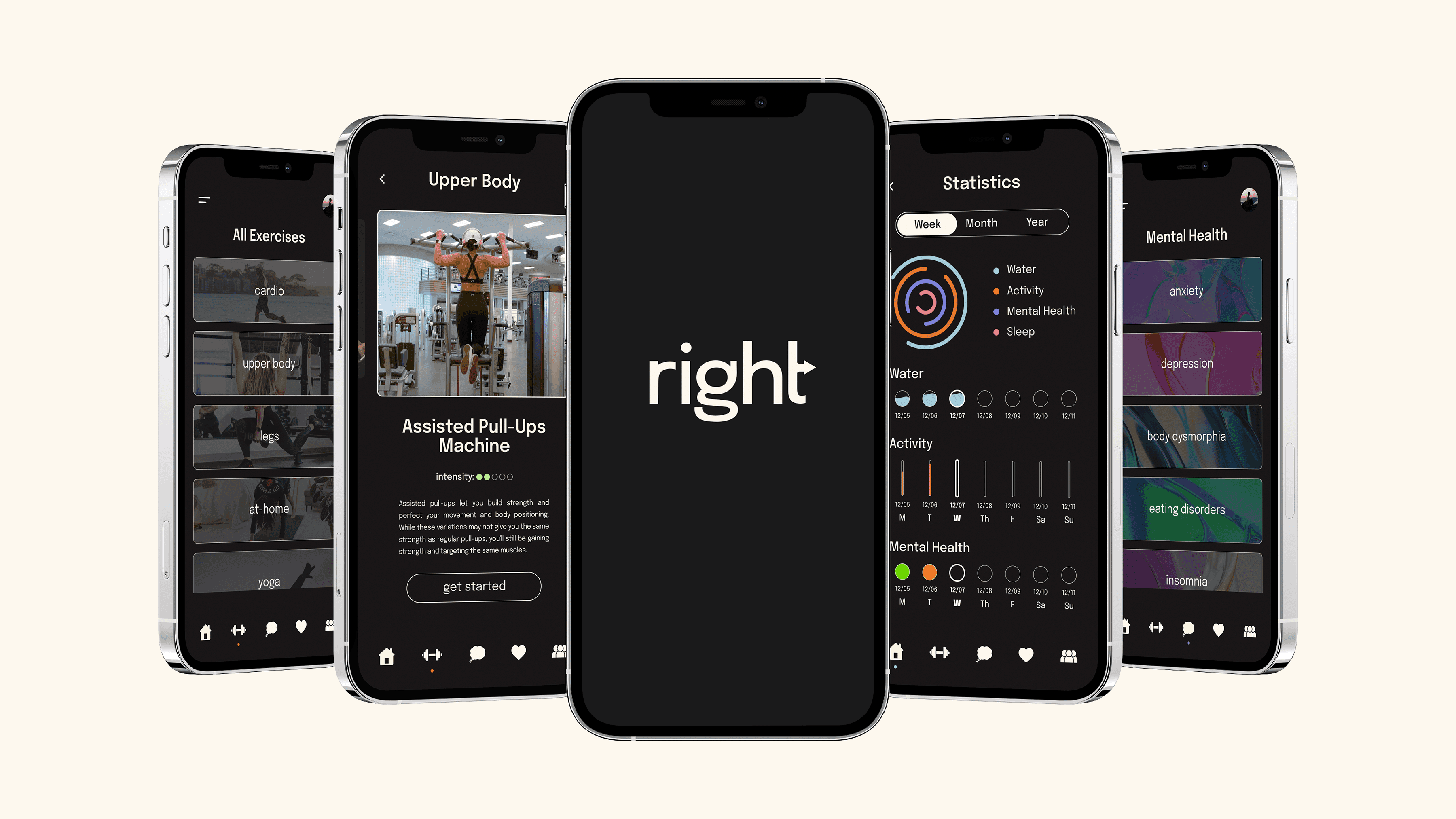 Right is a wellness-based fitness app that helps users ease into healthy habits and connect with a supportive community, without the intimidation of traditional fitness spaces.